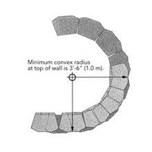 | Starting at the straight wall area, place units centered over a joint of units below to form a running bond pattern. Build through curves in a similar manner.