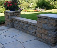 | Start by digging a shallow trench 12" deep by 24" wide. Cut through and remove any sod, roots or large rocks. Place a 6" leveling pad of compacted sand or gravel in the trench to receive the first course of Keystone Verazzo Stone. |